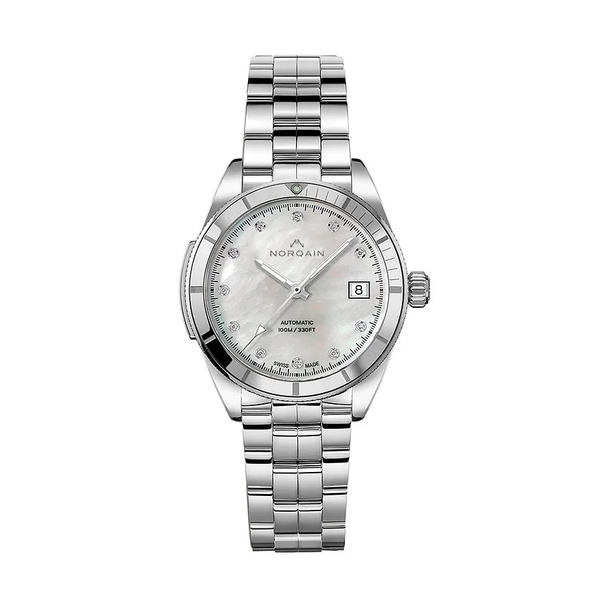 Besonderheiten: Leuchtzeiger, Leuchtindizes, Verschraubte Krone, Verschraubter Gehäuseboden, Gehäuseboden Sichtfenster, Saphirglasboden, Brillanten Zifferblatt, Austauschbares Armband