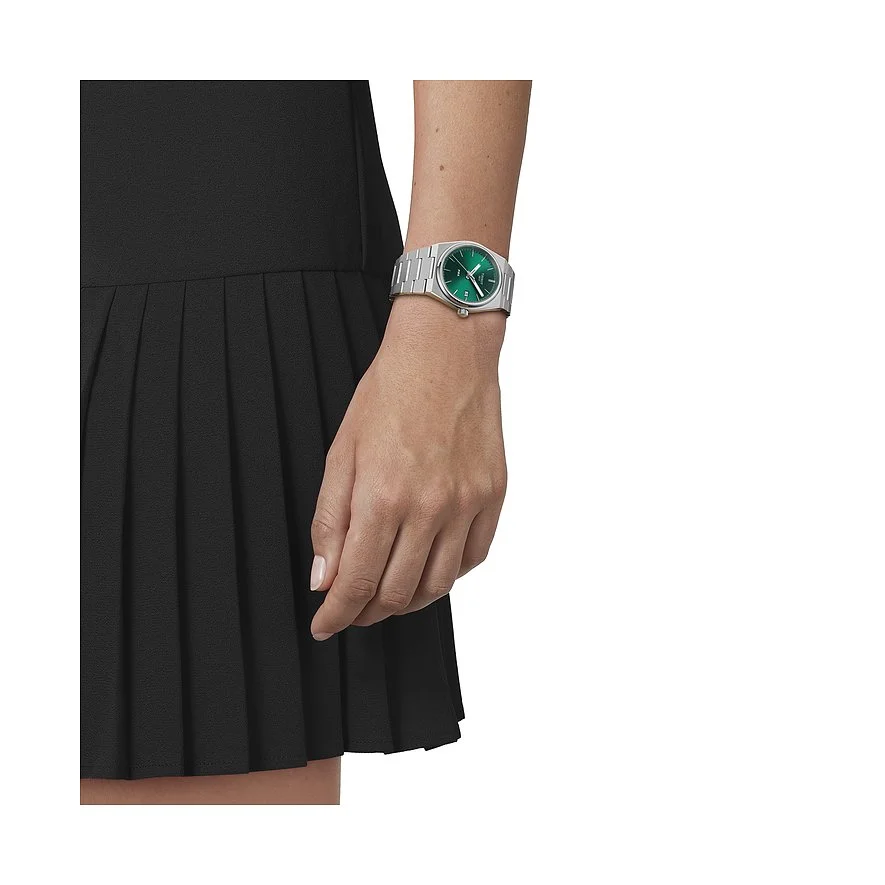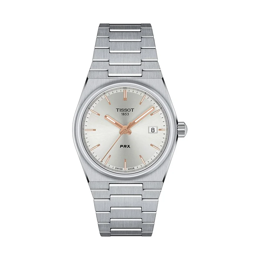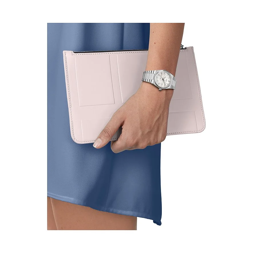 Schweizer Uhrmacherkunst mit einem ausgezeichneten Preis-Leistungsverhältnis: Tissot sei Dank! Handwerkskunst und Qualität, verbunden mit Hingabe für Leistung und Präzision, sind der tägliche Ansporn in der Manufaktur aus dem schweizerischen Le Locle. Schon seit 1853 entstehen hier durch neuartige Technologien hochwertige Uhren in vollkommenen Designs. Wer auf der Suche nach einem wahren Allrounder für Alltag, Business und besondere Anlässe ist, trifft mit der Unisexuhr T-Classic PRX genau die richtige Wahl! Durch ihr bedingungslos ästhetisches Design passt die luxuriöse Uhr mit Edelstahl-Gehäuse sich spielerisch allen Looks an. Auch das graue Armband aus Edelstahl sorgt für zeitlosen Chic und angenehmen Tragekomfort. Die T-Classic PRX ist die perfekte Uhr für alle, die ein schmales Handgelenk haben. Gekonnt fügt sich das silberfarbene Zifferblatt mit Markierungen in das gelungene Gesamtbild ein. Nicht nur elegant, sondern auch praktisch: Diese Uhr verrät neben der Uhrzeit auch das Datum. Ein gleichermaßen hochklassiges wie widerstandsfähiges Saphirglas schützt das Zifferblatt vor Kratzern, Stößen und Schlägen. Der Zeitmesser verfügt über ein hochwertiges Swiss Made-Quarzwerk im Inneren. Wasserdicht bis 10 bar ist die Uhr im Alltag und bei Abenteuern ein idealer Begleiter: Sogar Schwimmen ist unbesorgt möglich! Die Butterfly-Faltschließe sorgt nicht nur für sicheren Halt, sondern lässt sich auch gut in der Größe verstellen.